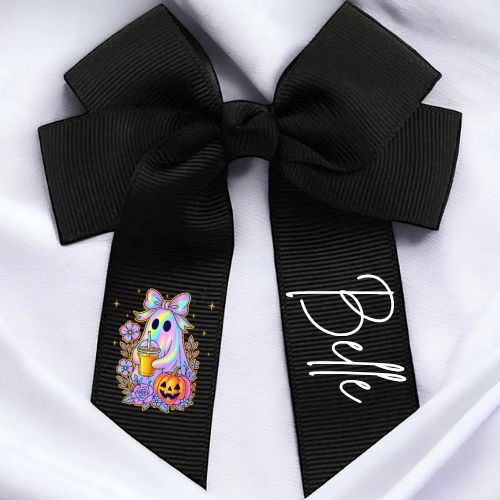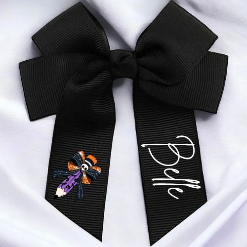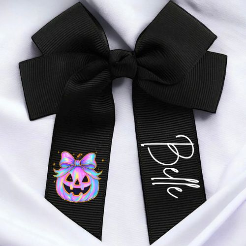 Available in 4" crocodile clip bows personalised with any name and any of the designs shown