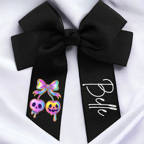 Available in 4" crocodile clip bows personalised with any name and any of the designs shown
